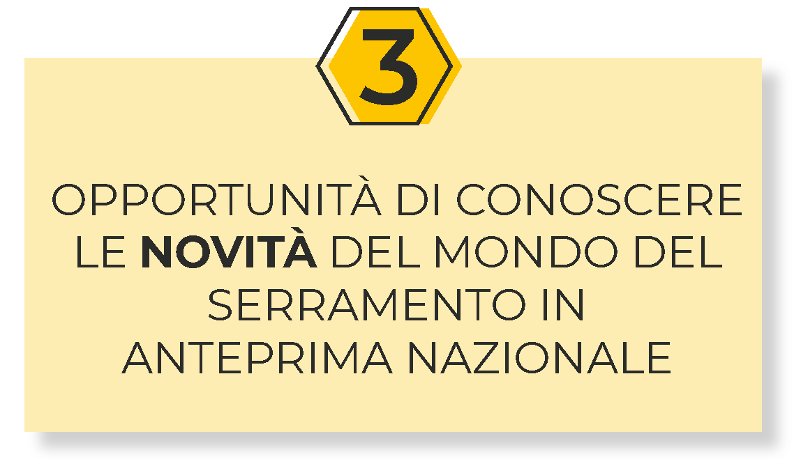 L'UNICA FIERA IN ITALIA CHE RIUNISCE I PROFESSIONISTI DEL SERRAMENTO IN LEGNO, ALLUMINIO, FERRO E PVC IN UN MOMENTO DI CONOSCENZA, INCONTRO E CONDIVISIONE